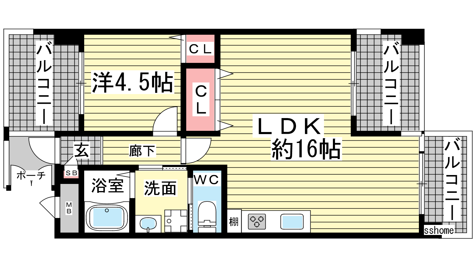 - LDK16帖、洋室4.5帖