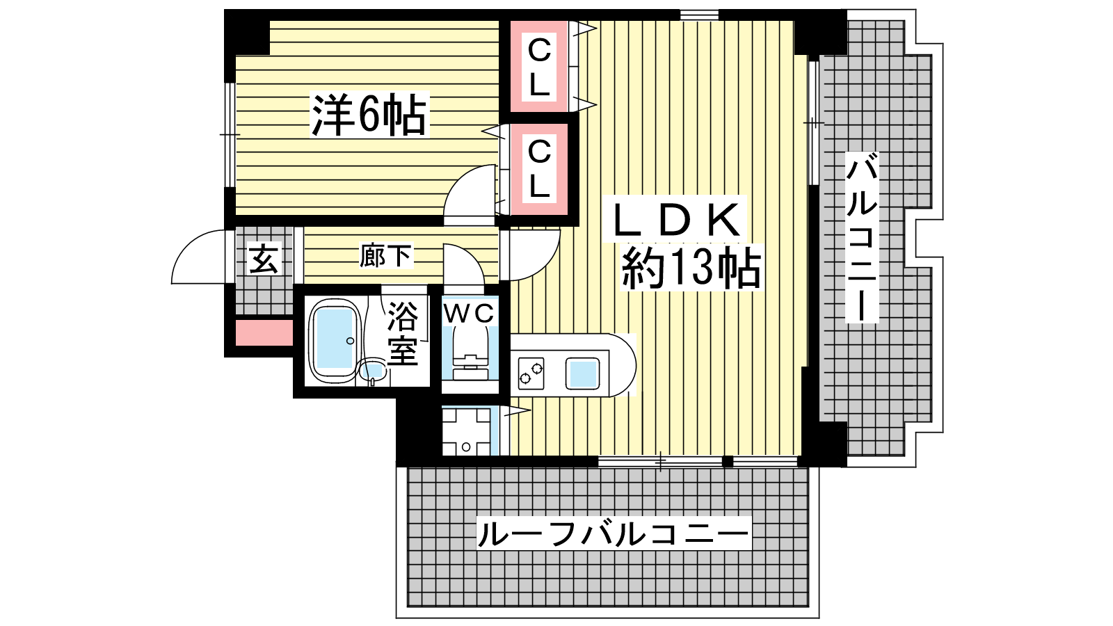 - LDK13帖、洋室6帖