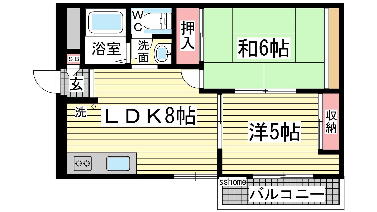 - 和室6帖、洋室5帖、LDK8帖