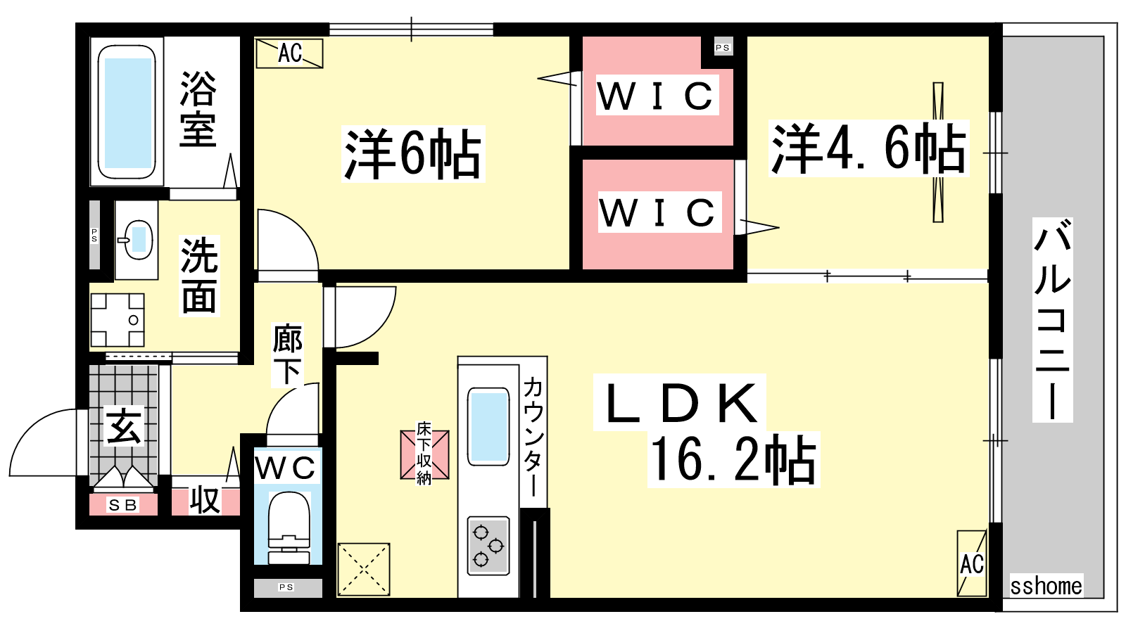 - LDK16.2帖、洋室6帖、洋室4.6帖