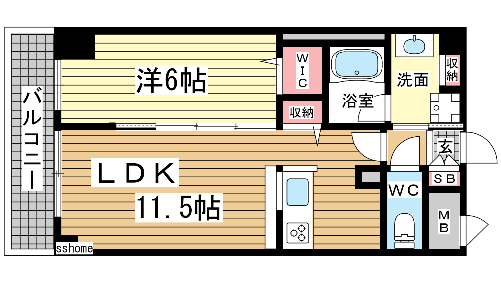 - 洋室6帖、LDK11.5帖