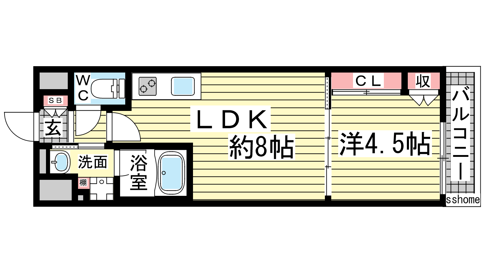 - LDK8帖、洋室4.5帖
