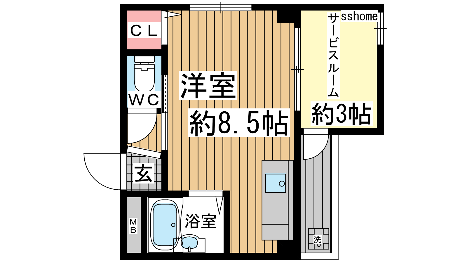- 洋室8.5帖、S3帖