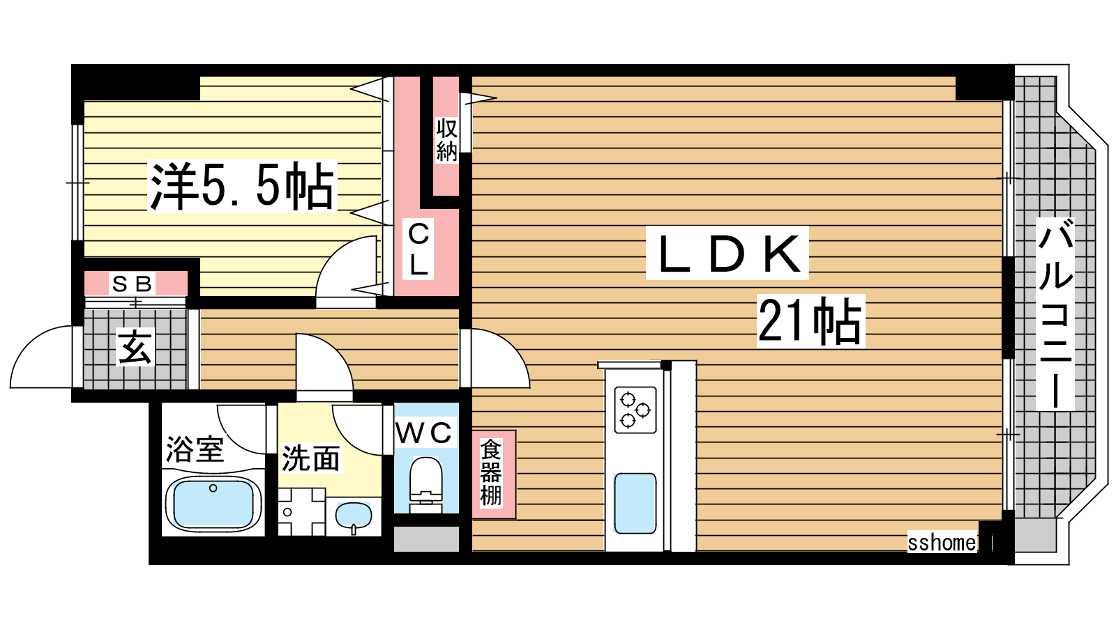 - LDK21帖、洋室5.5帖