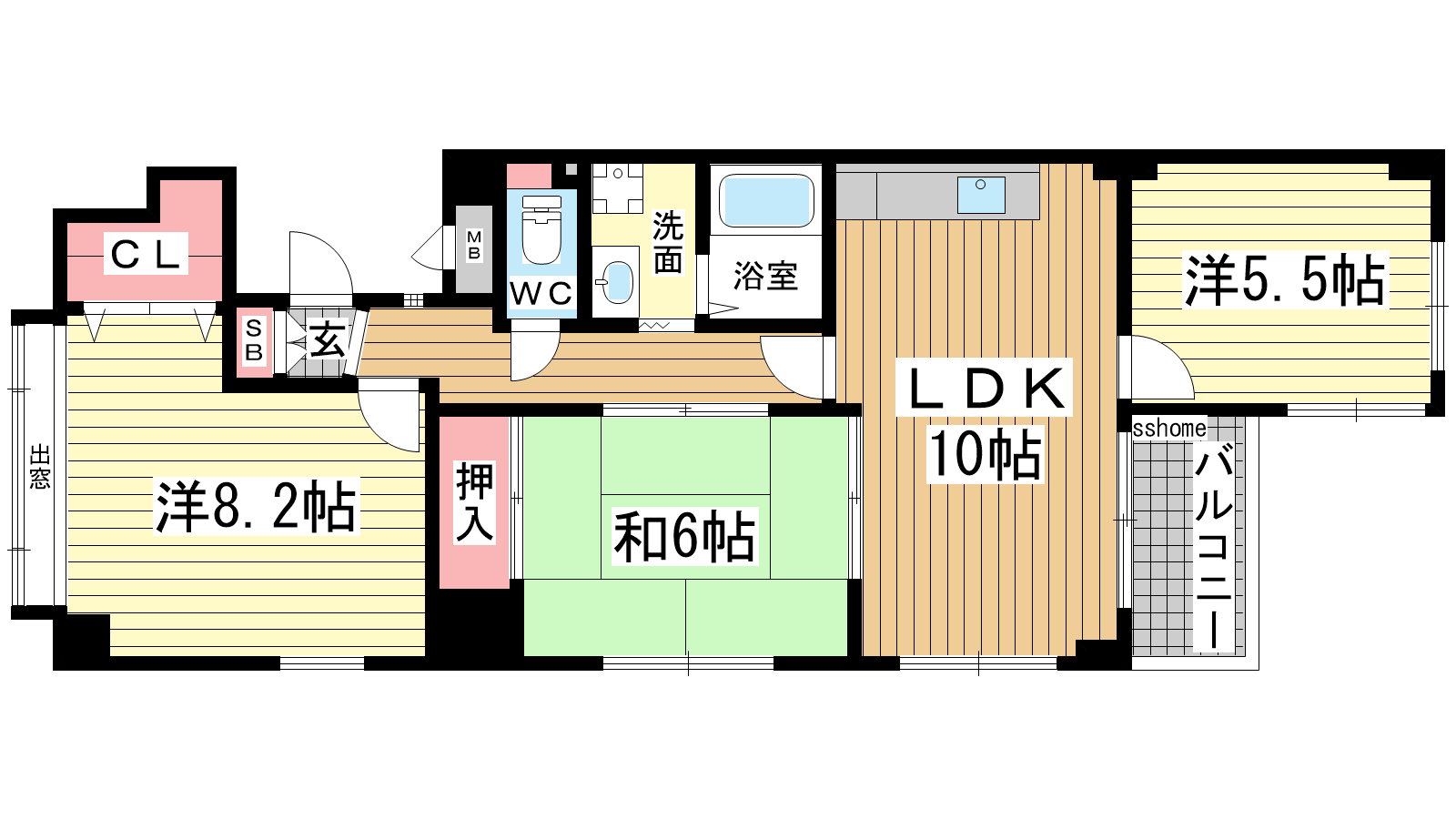 - LDK10帖、洋室5.5帖、和室6帖、洋室8.2帖