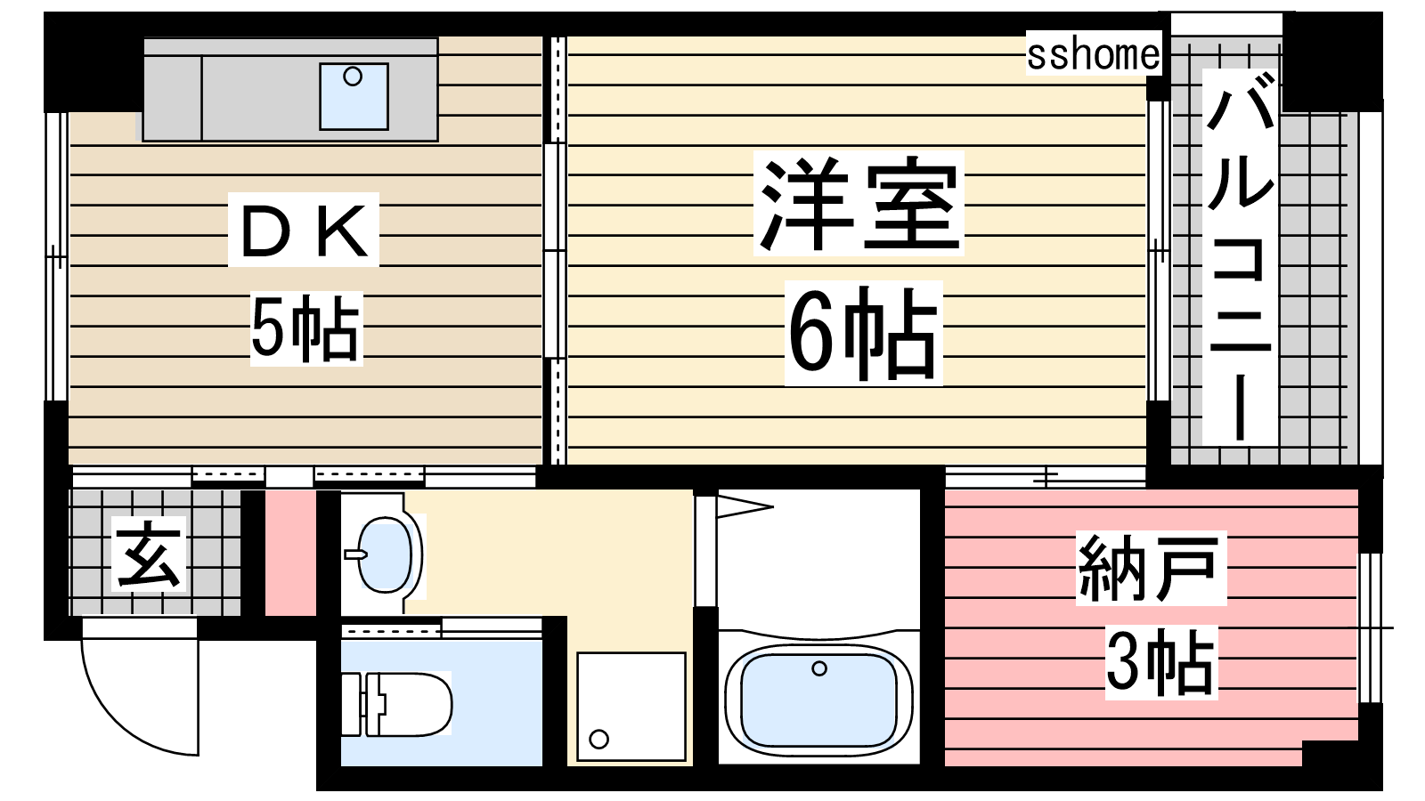 - 洋室6帖、S3帖、DK5帖