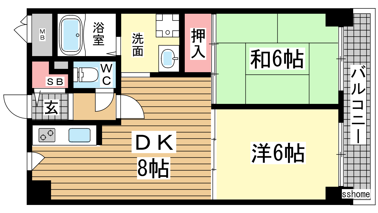 - DK8帖、洋室6帖、和室6帖
