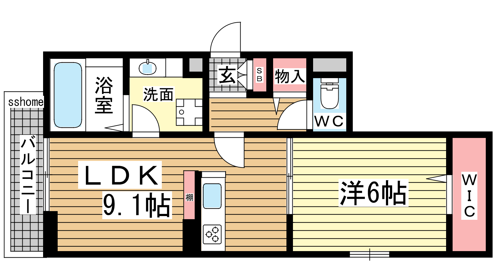 - LDK9.1帖、洋室6帖