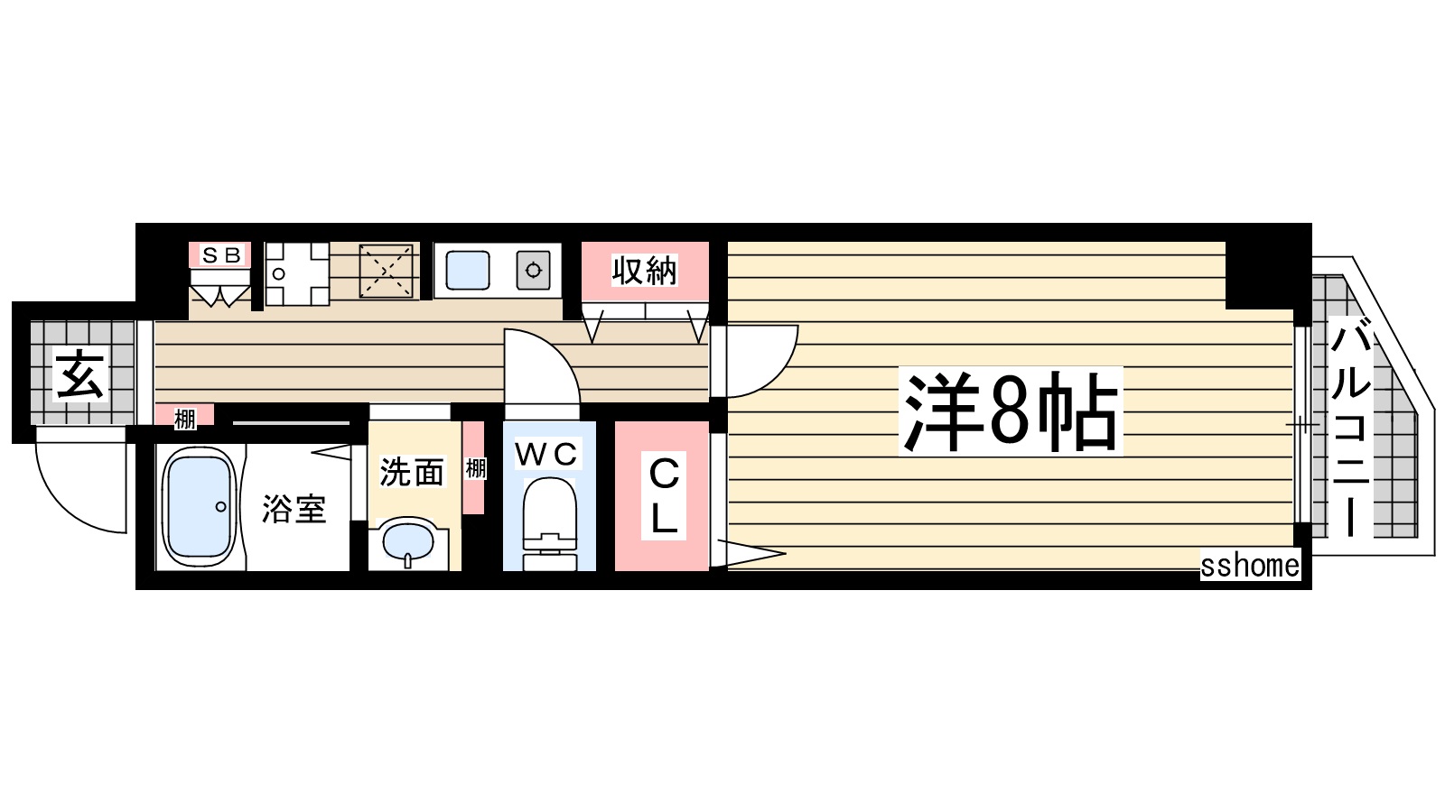 オール電化でエコな、ちょっと広めの1Kです♪長い廊下?が魅力