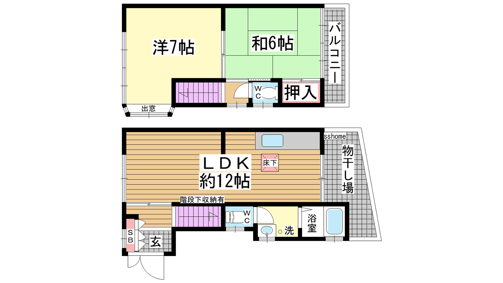- LDK12帖、洋室7帖、和室6帖