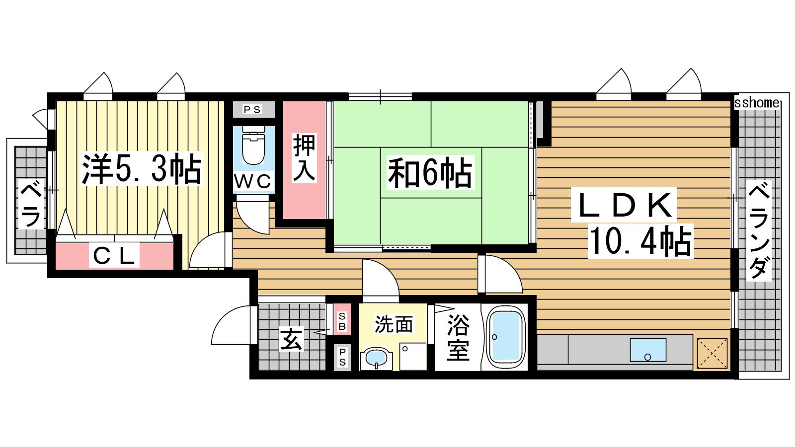 - LDK10.4帖、洋室5.3帖、和室6帖
