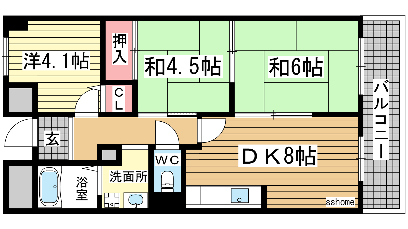 - DK8帖、洋室4.1帖、和室4.5帖、和室6帖