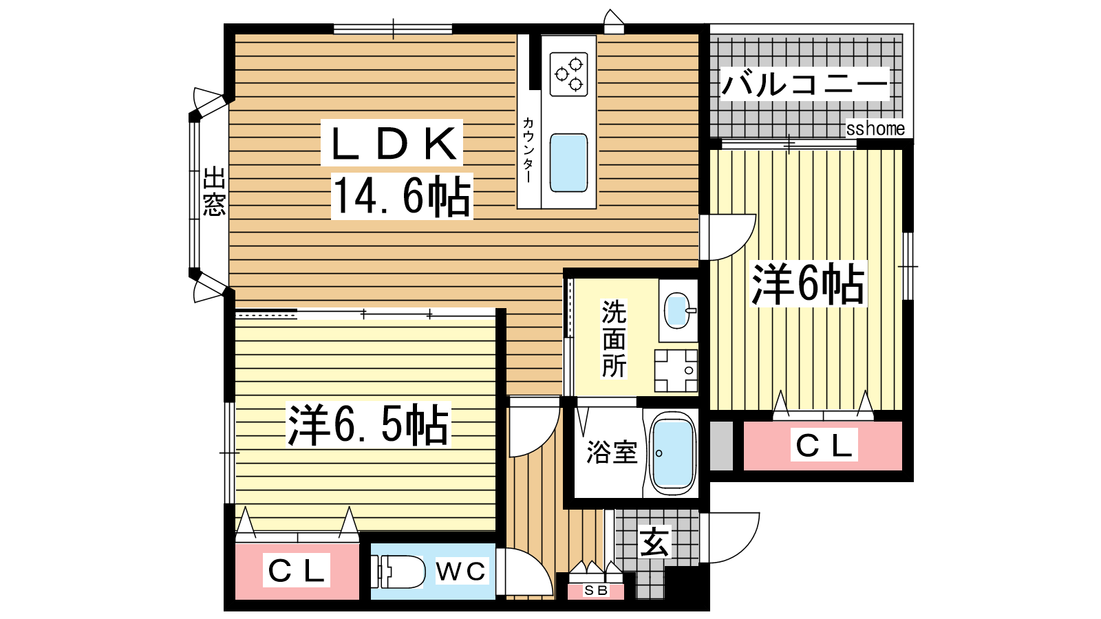 - LDK14.6帖、洋室6.5帖、洋室6帖