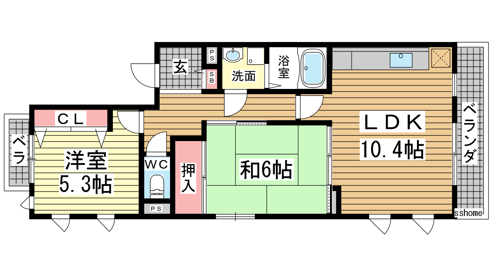 - LDK10.4帖、洋室5.3帖、和室6帖