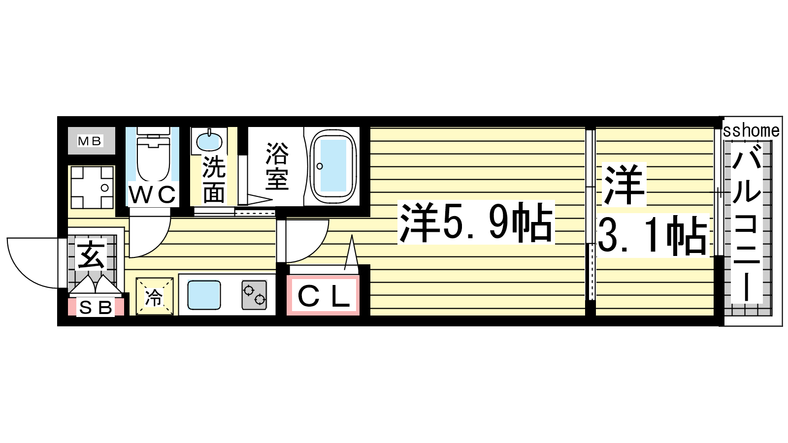 - 洋室5.9帖、洋室3.1帖