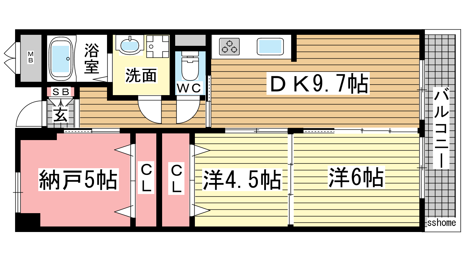 - DK9.7帖、S5帖、洋室4.5帖、洋室6帖