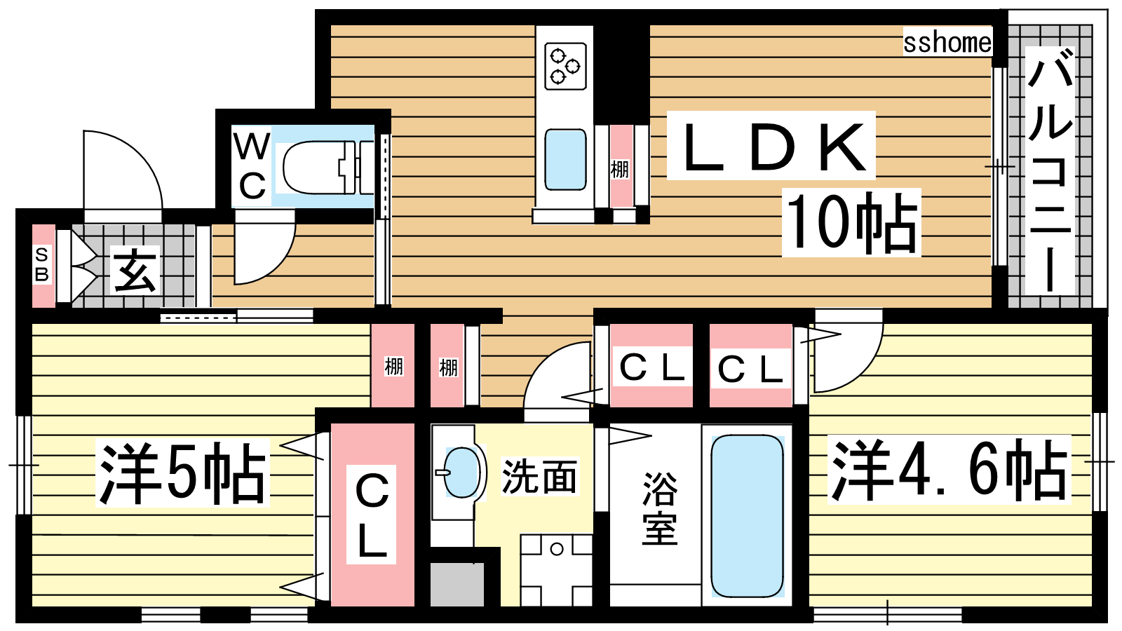 - LDK10帖、洋室5帖、洋室4.6帖