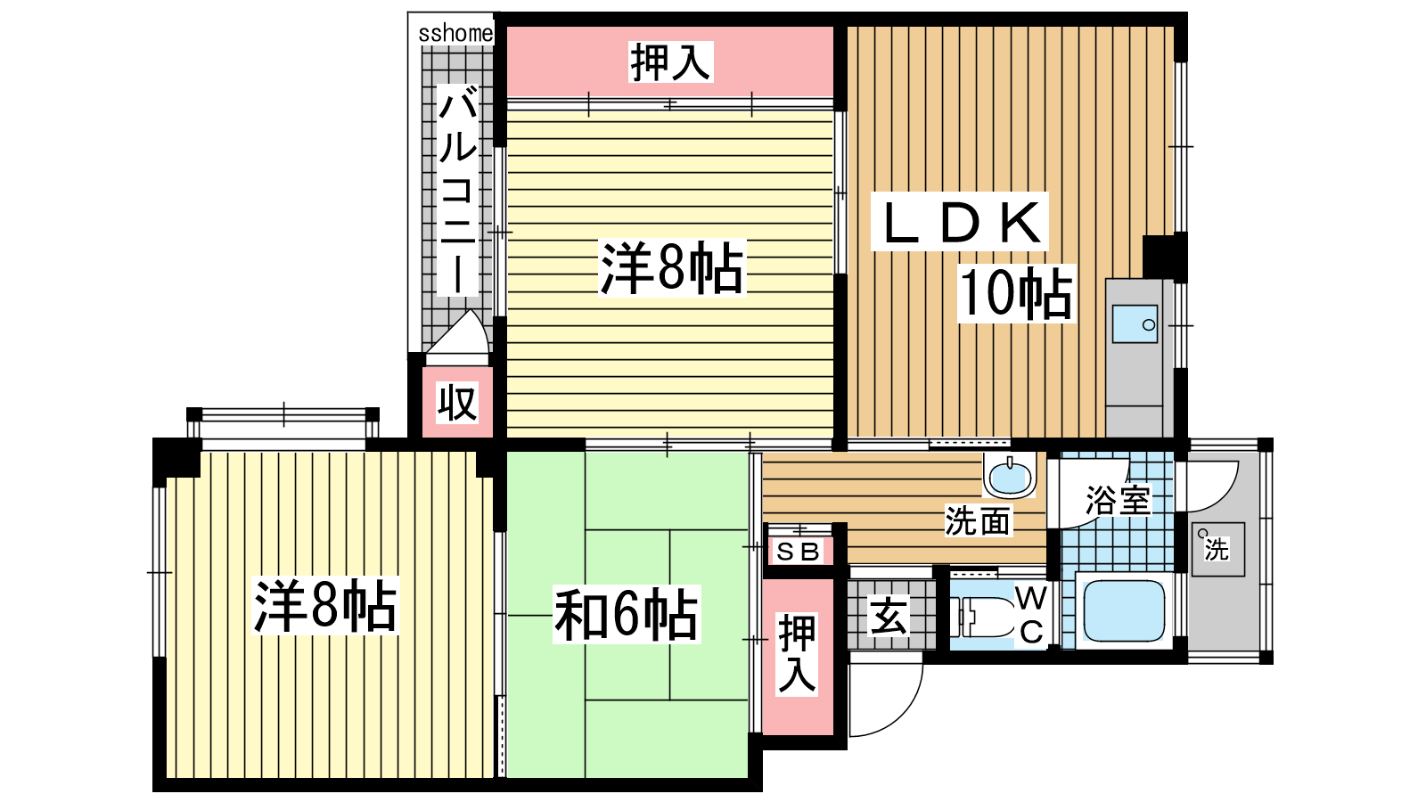 - LDK10帖、洋室8帖、洋室6帖、和室6帖