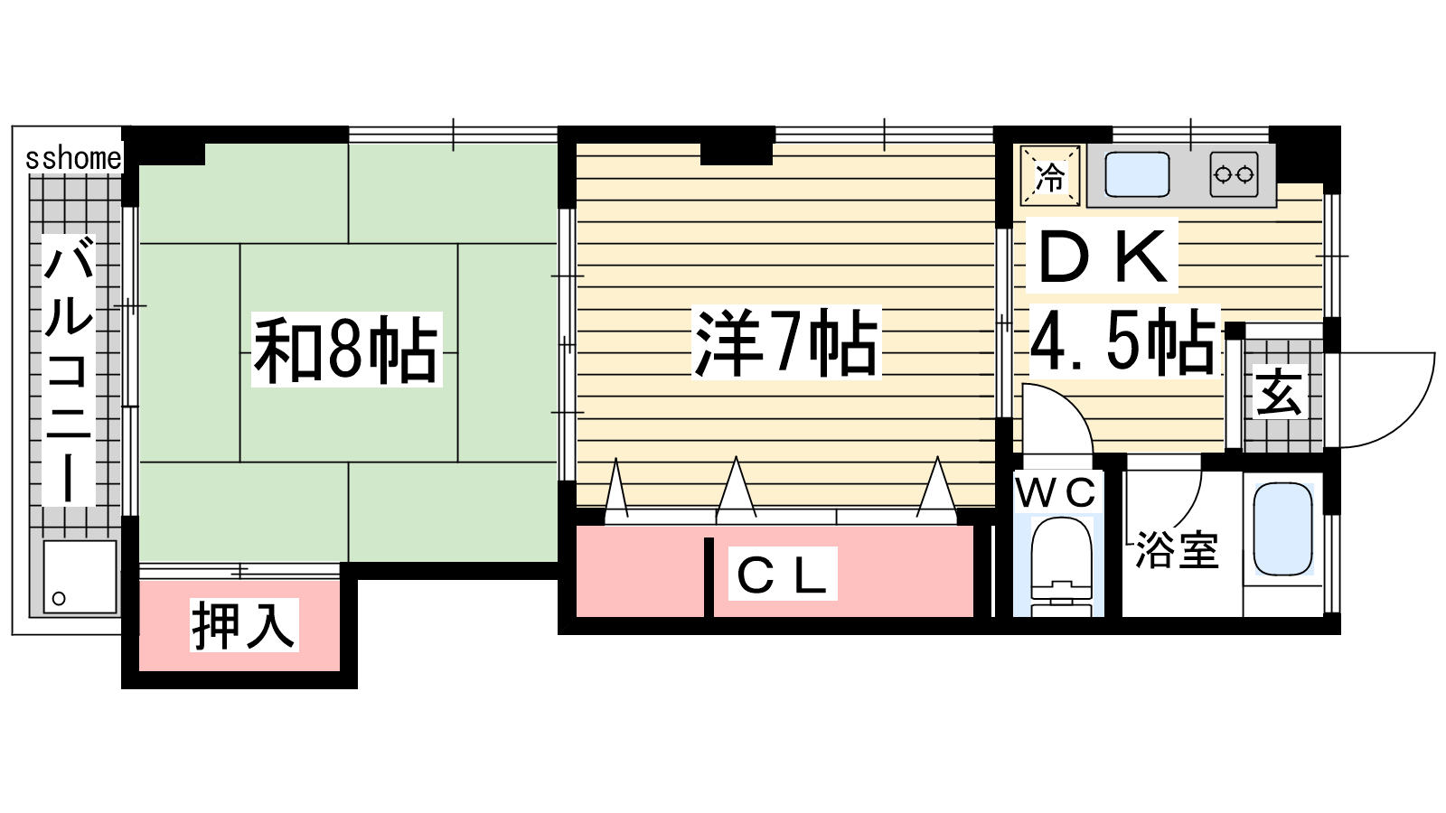 - DK4.5帖、洋室7帖、和室8帖