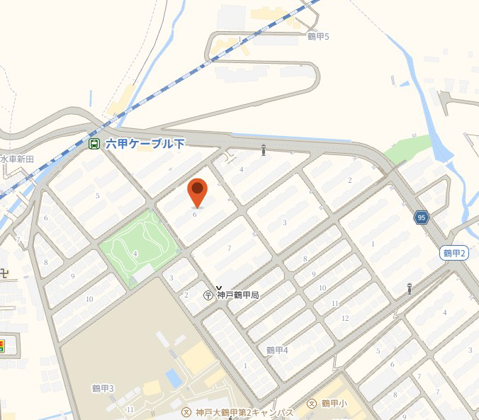 阪急神戸線 御影駅 バス33分 鶴甲団地バス停 徒歩1分 - 所在地
