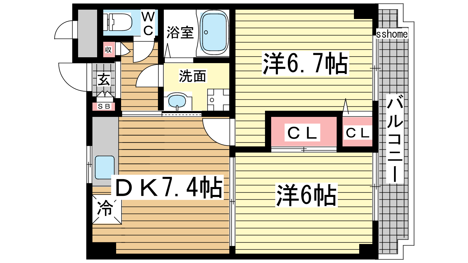 - DK7.4帖、洋室6.7帖、洋室6帖