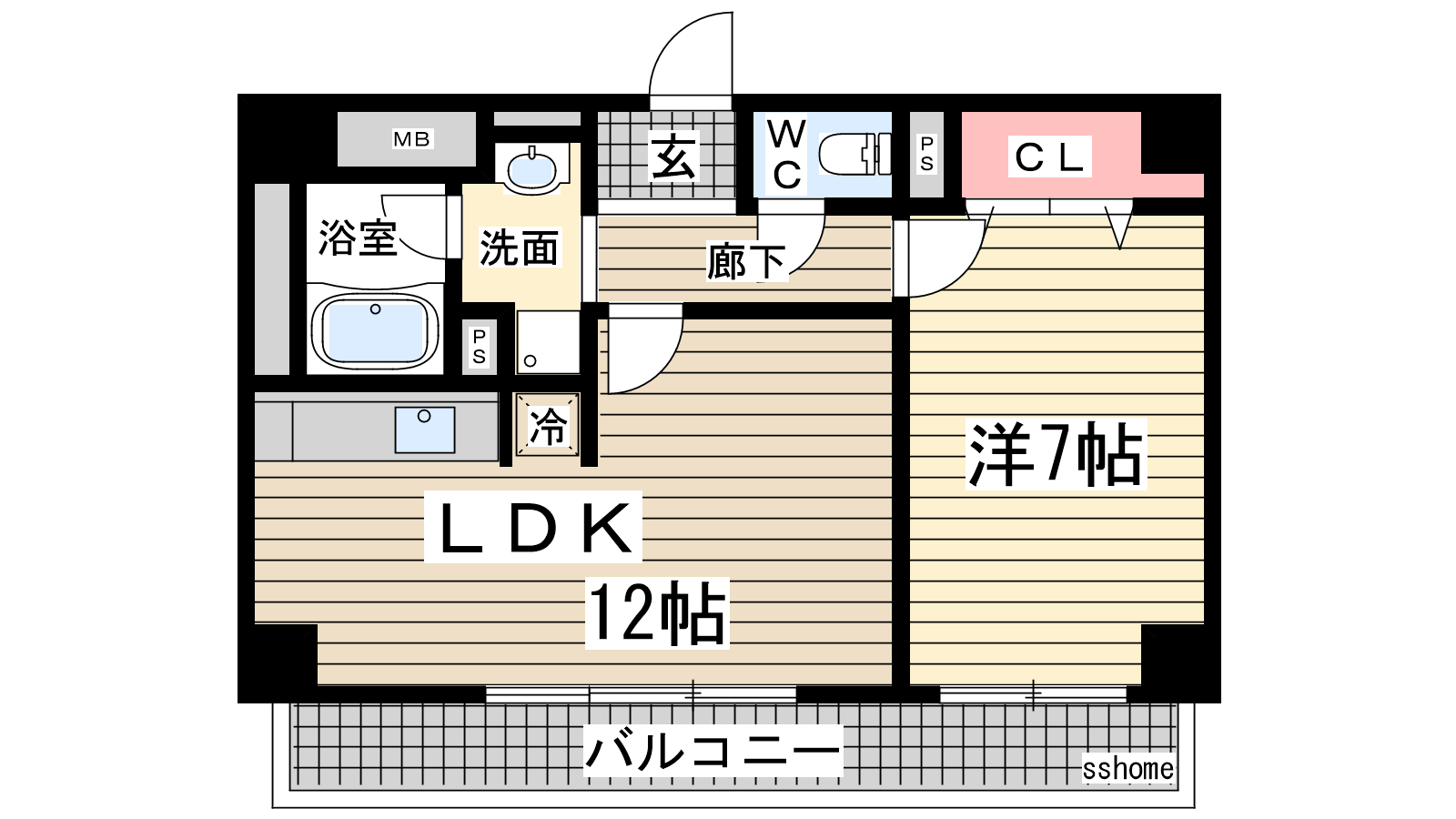 - 洋室7帖、LDK12帖