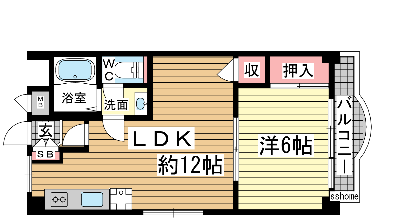 - LDK12帖、和室6帖