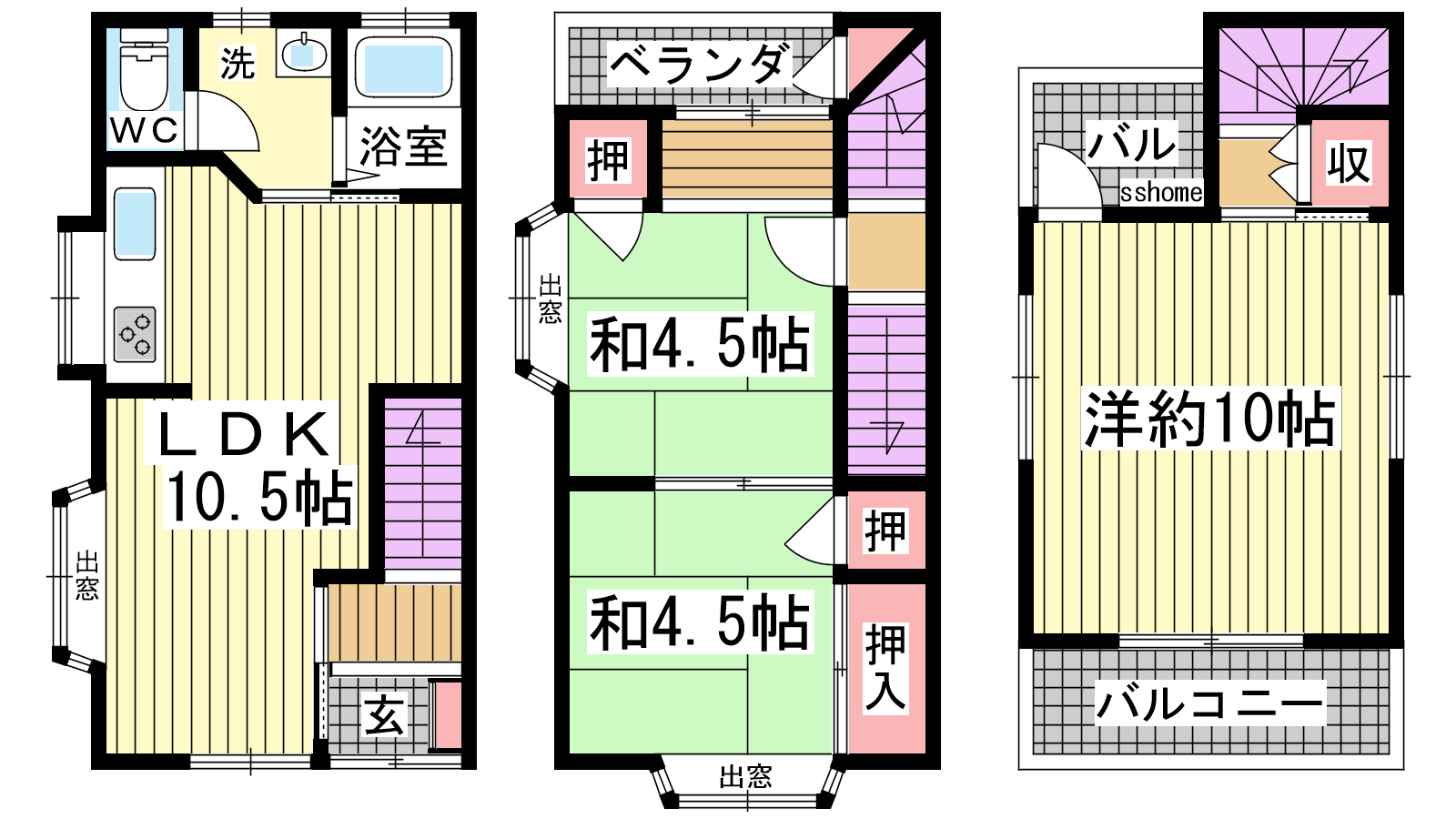 - LDK10.5帖、洋室10帖、和室4.5帖、洋室4.5帖