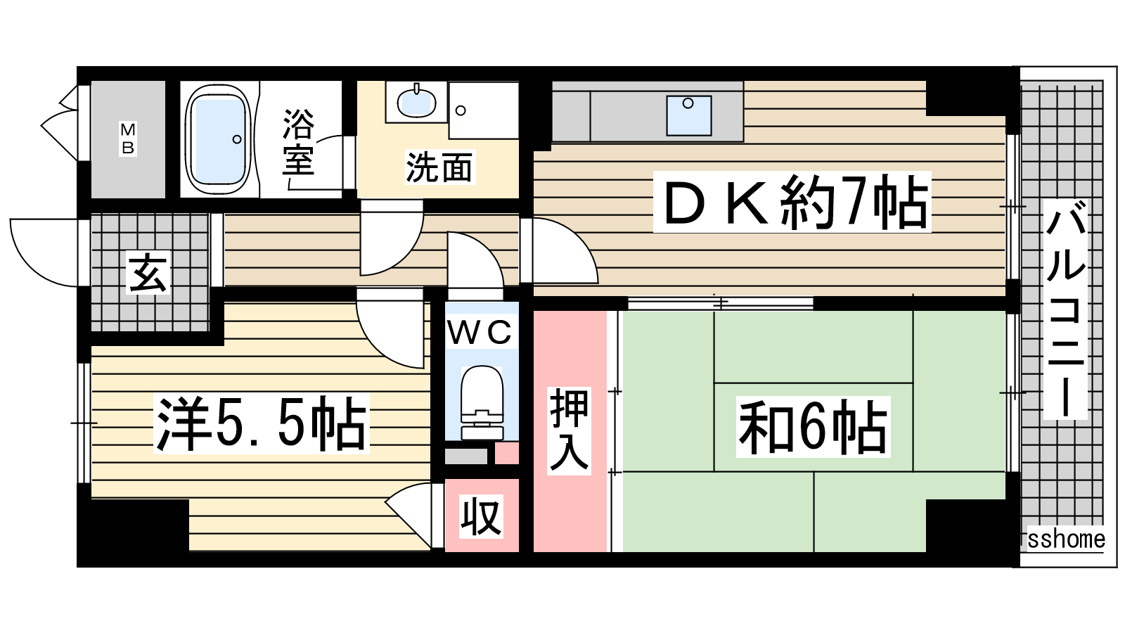 - 洋室5.5帖、和室6帖、DK7帖