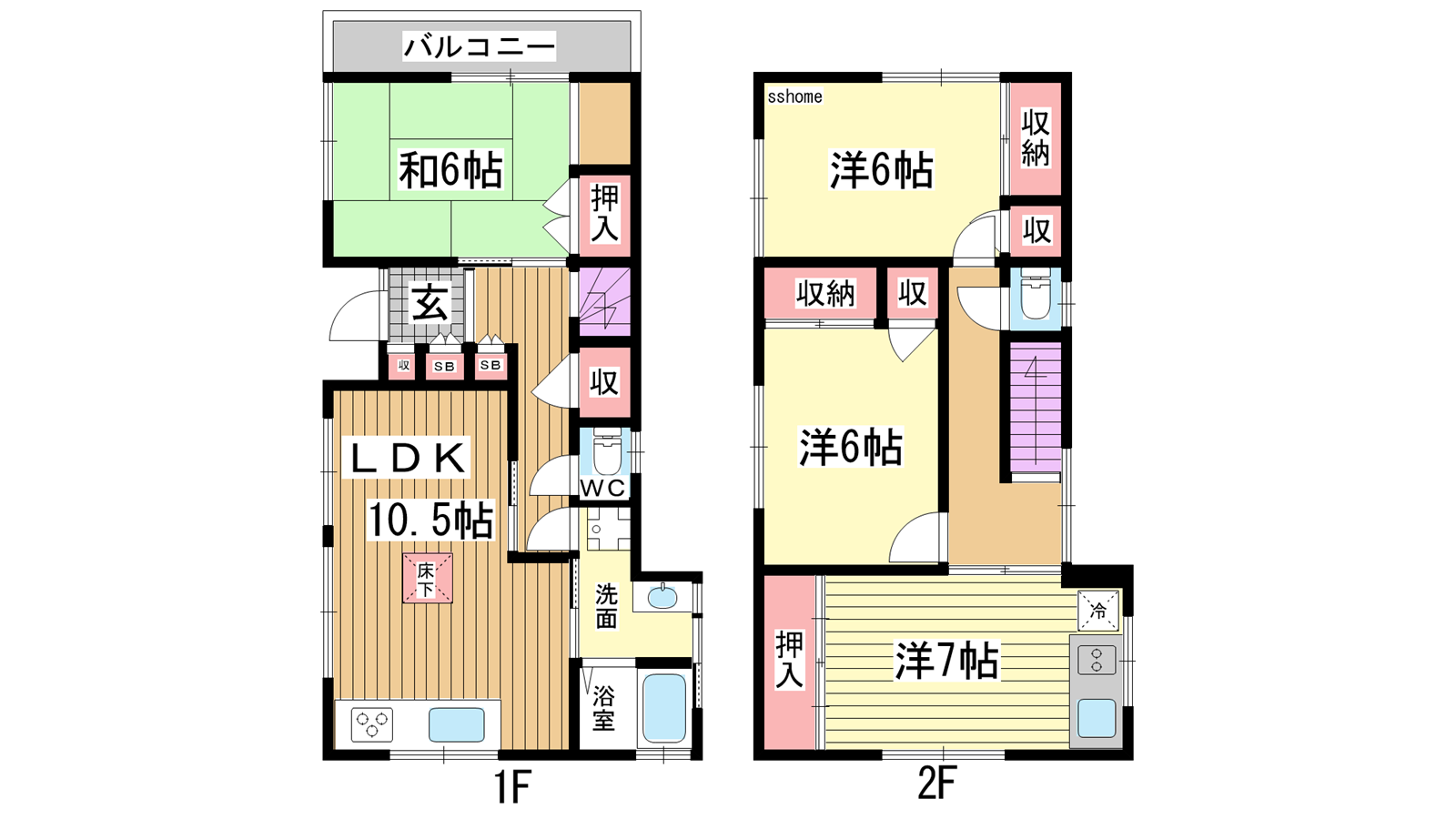 - LDK10.5帖、洋室7帖、洋室6帖、洋室6帖、和室6帖