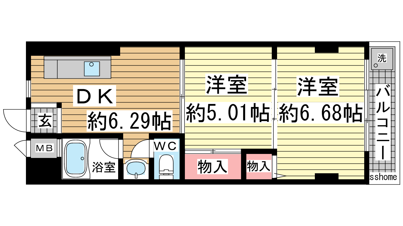 - DK6.29帖、洋室6.68帖、洋室5.01帖