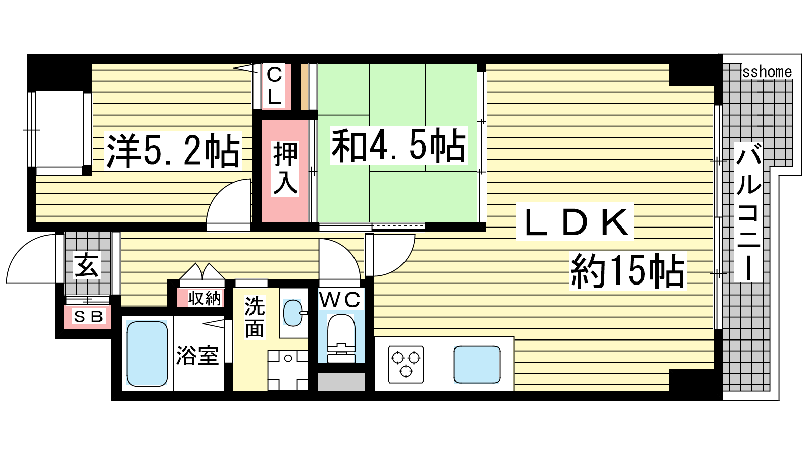 - LDK15帖、洋室5.2帖、和室4.5帖