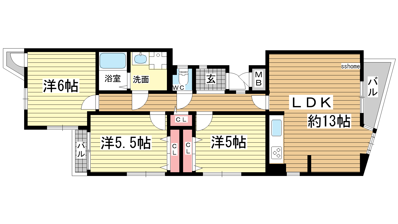 - LDK13帖、洋室6帖、洋室5.5帖、洋室5帖