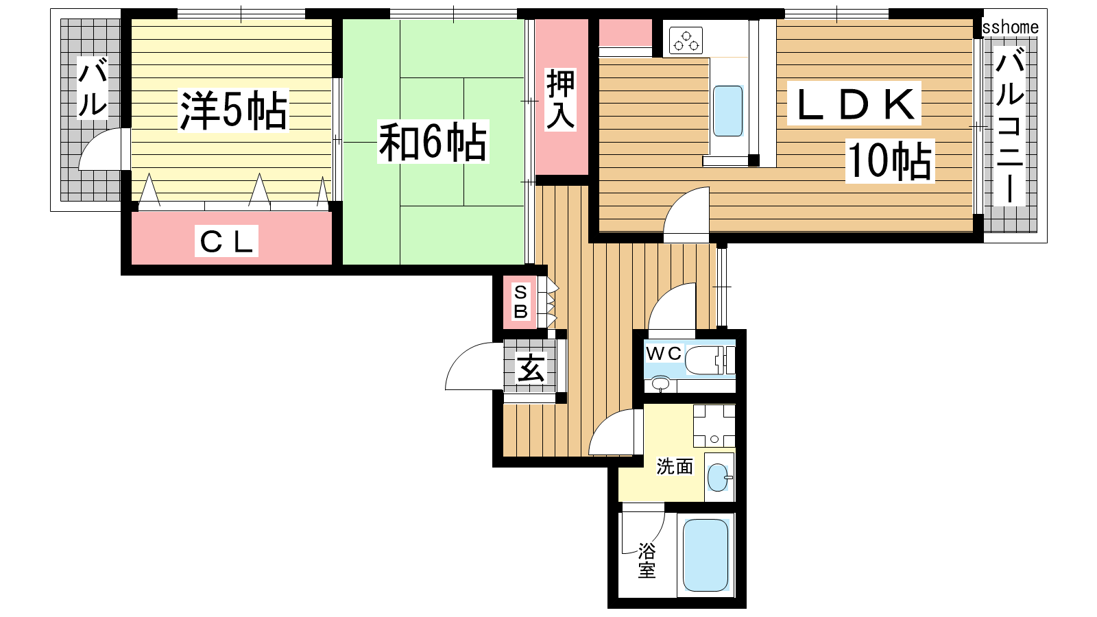 - LDK10帖、洋室5帖、和室6帖