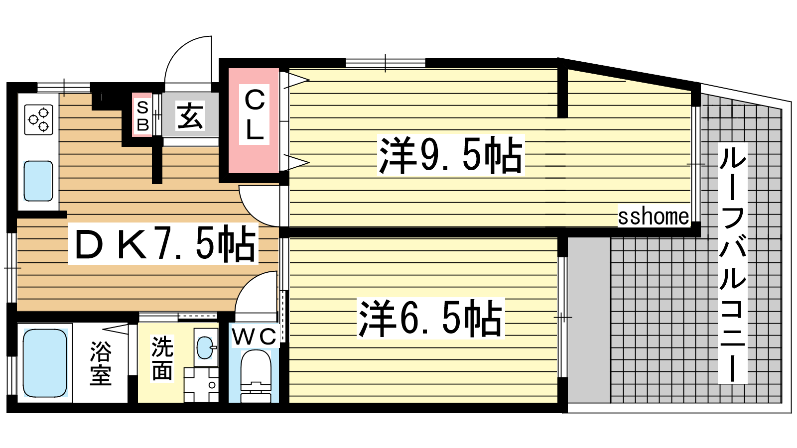 - DK7.5帖、洋室9.5帖、洋室6.5帖