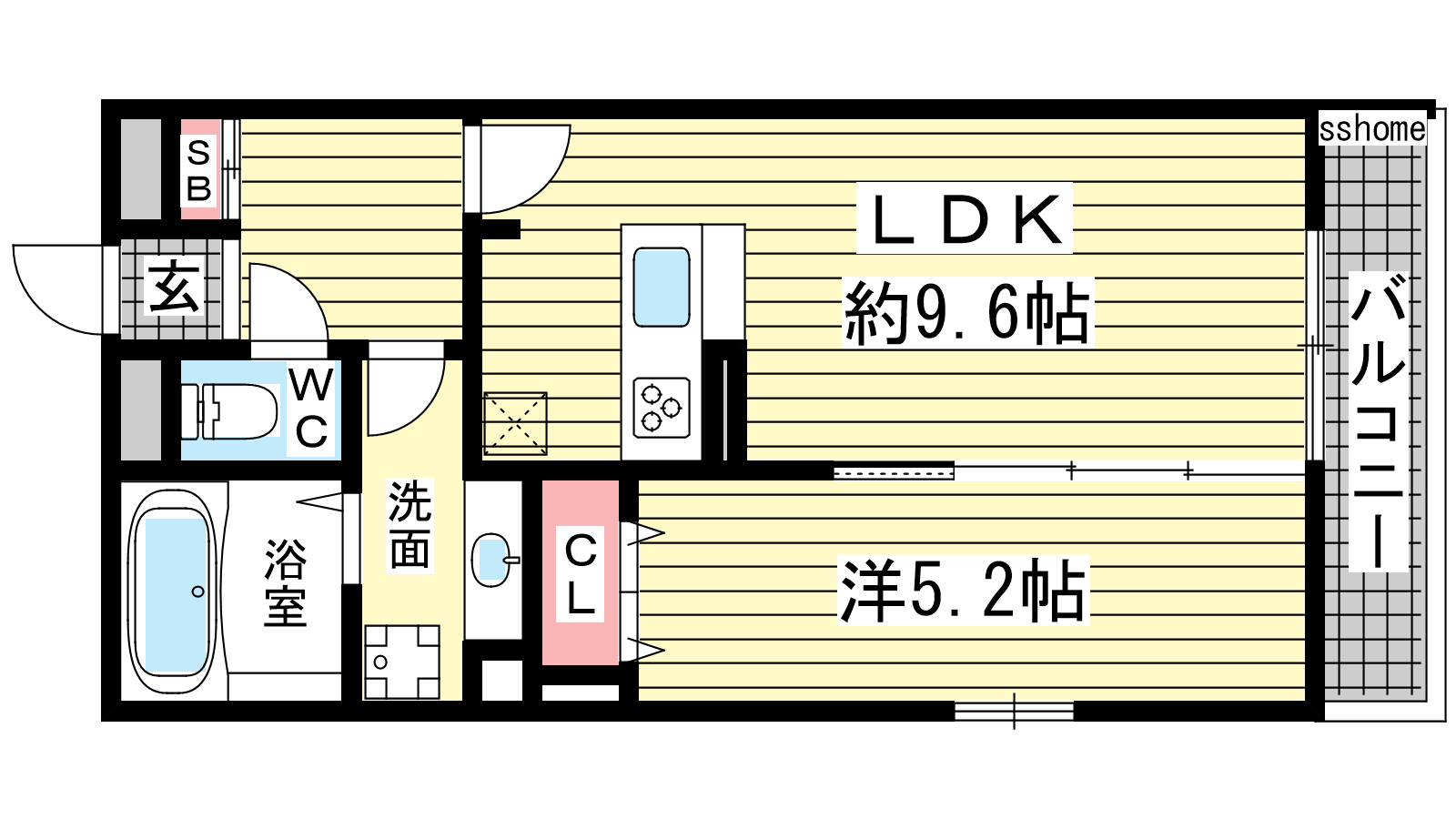 - LDK9.6帖、洋室5.2帖