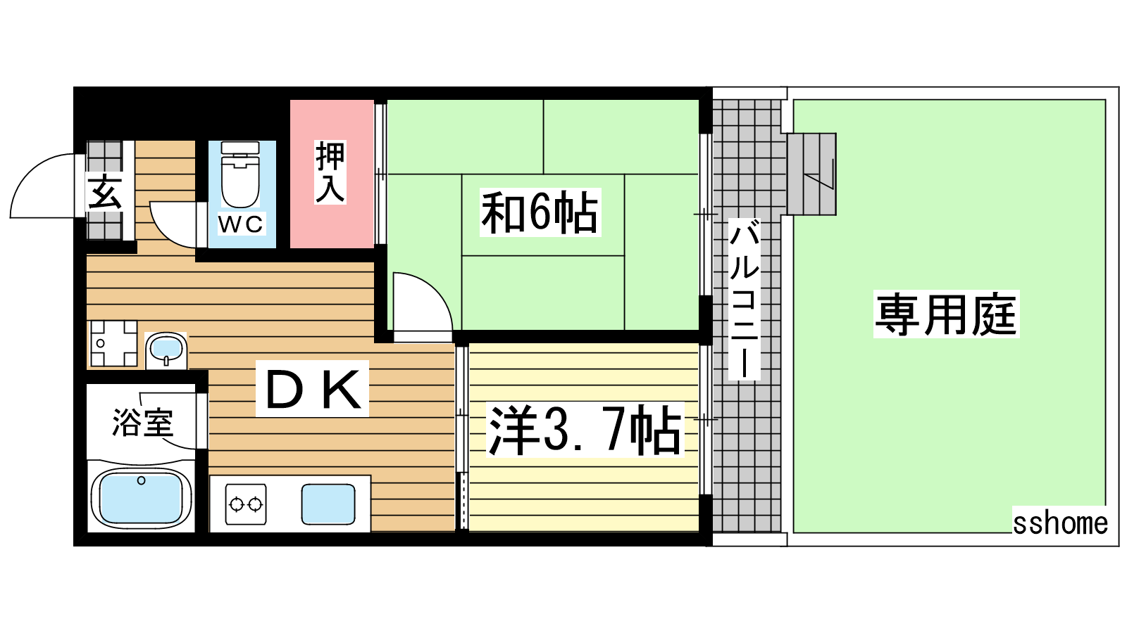 - 和室6帖、洋室3.7帖、DK6帖