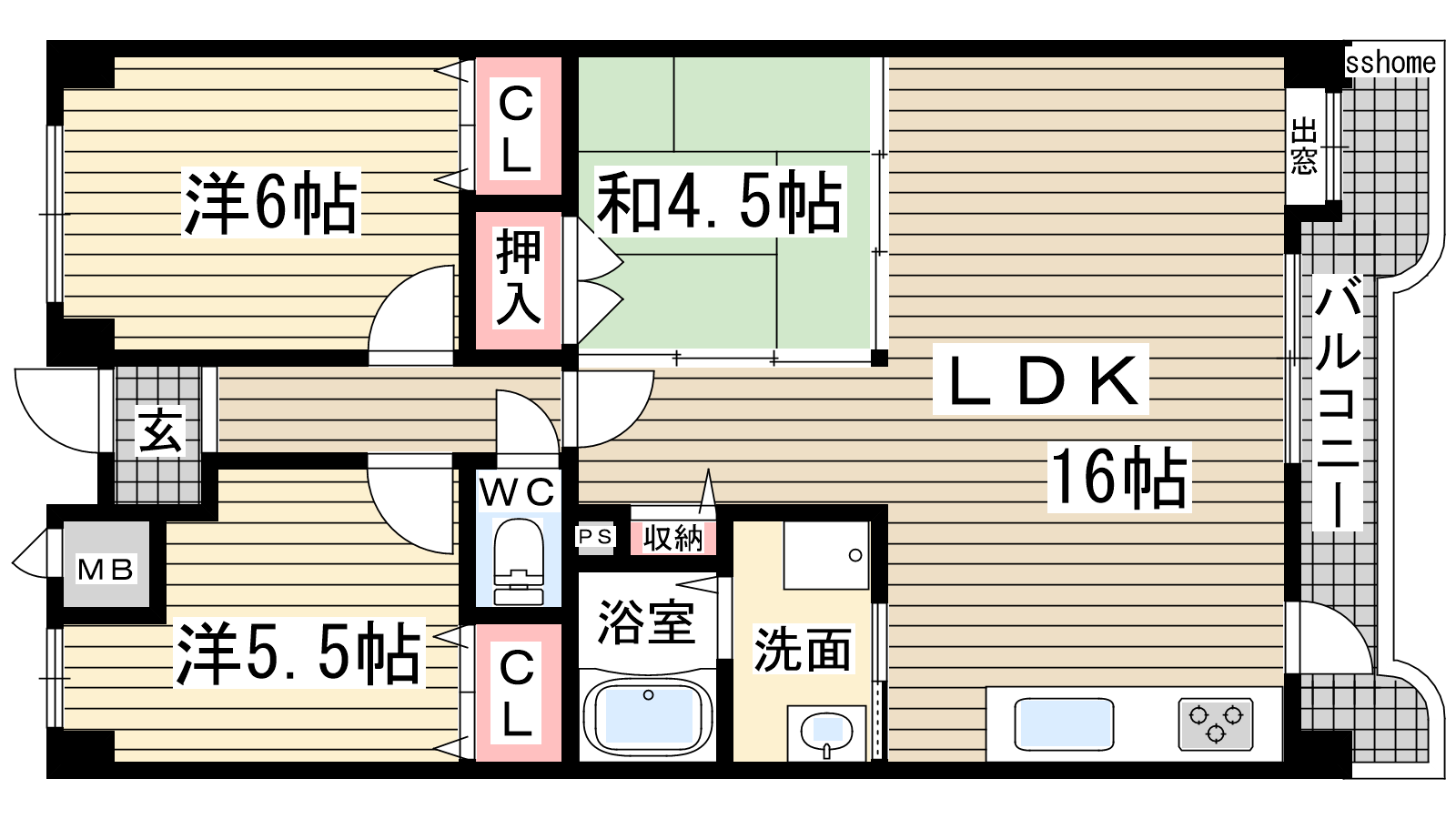 - LDK16帖、洋室6帖、洋室5.5帖、和室4.5帖