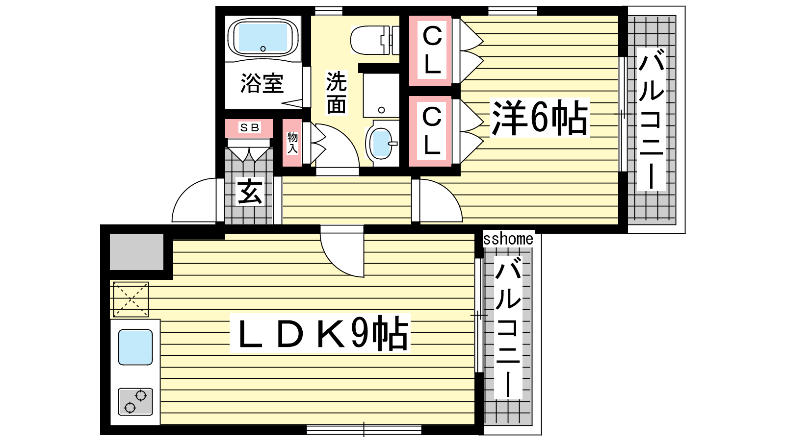 - 洋室6帖、LDK14帖