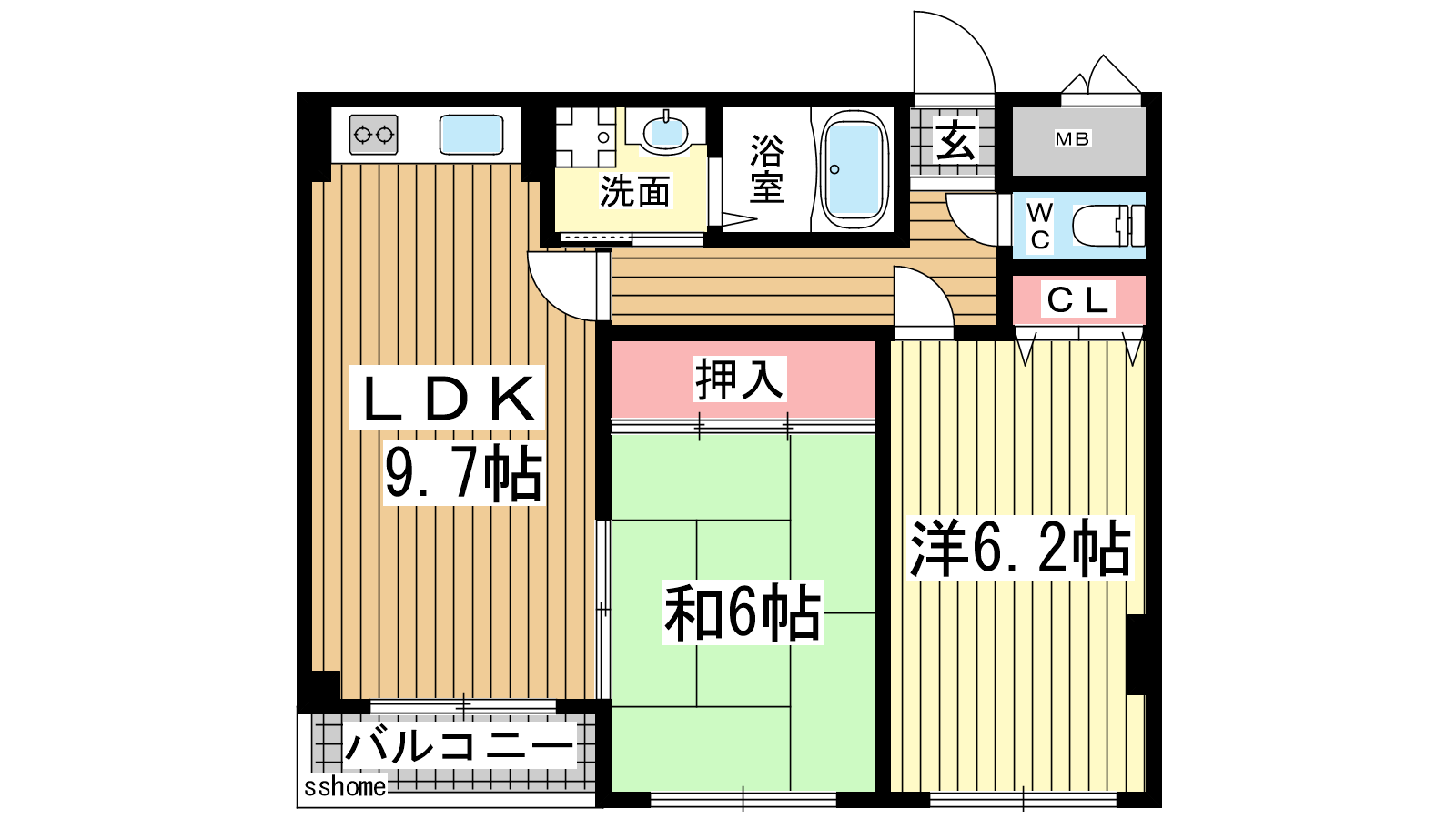 - LDK9.7帖、洋室6.2帖、和室6帖