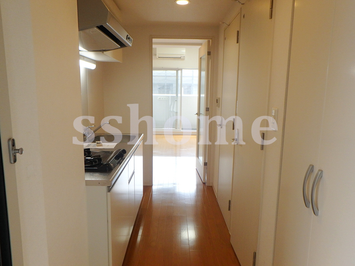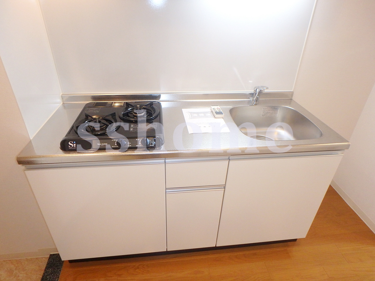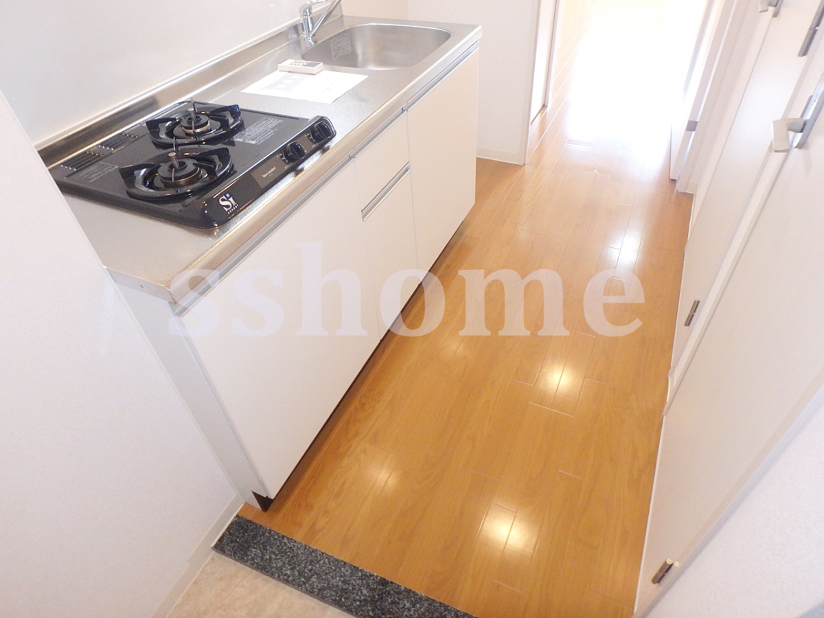 分譲賃貸 ペット飼育可能な単身者用マンション☆システムキッチン等、素敵です☆2口ガスコンロ付システムキッチンに浴室乾燥機付きバスルーム、シャンプードレッサー等充実の設備☆近くにはコンビニ、スーパーがあって便利☆