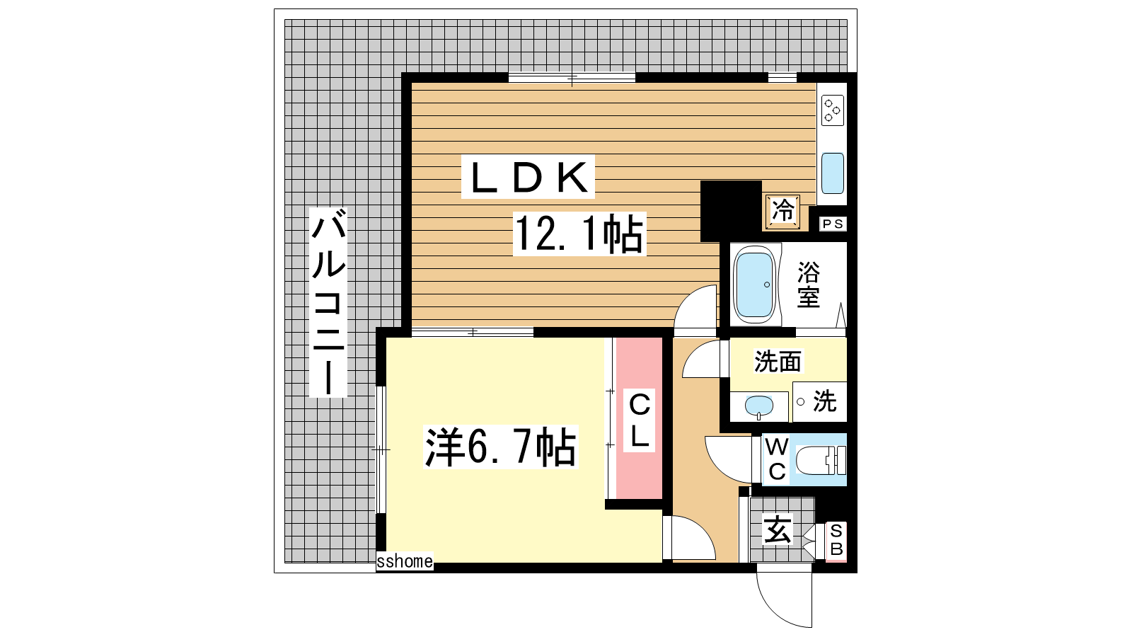 - LDK12.1帖、洋室6.7帖