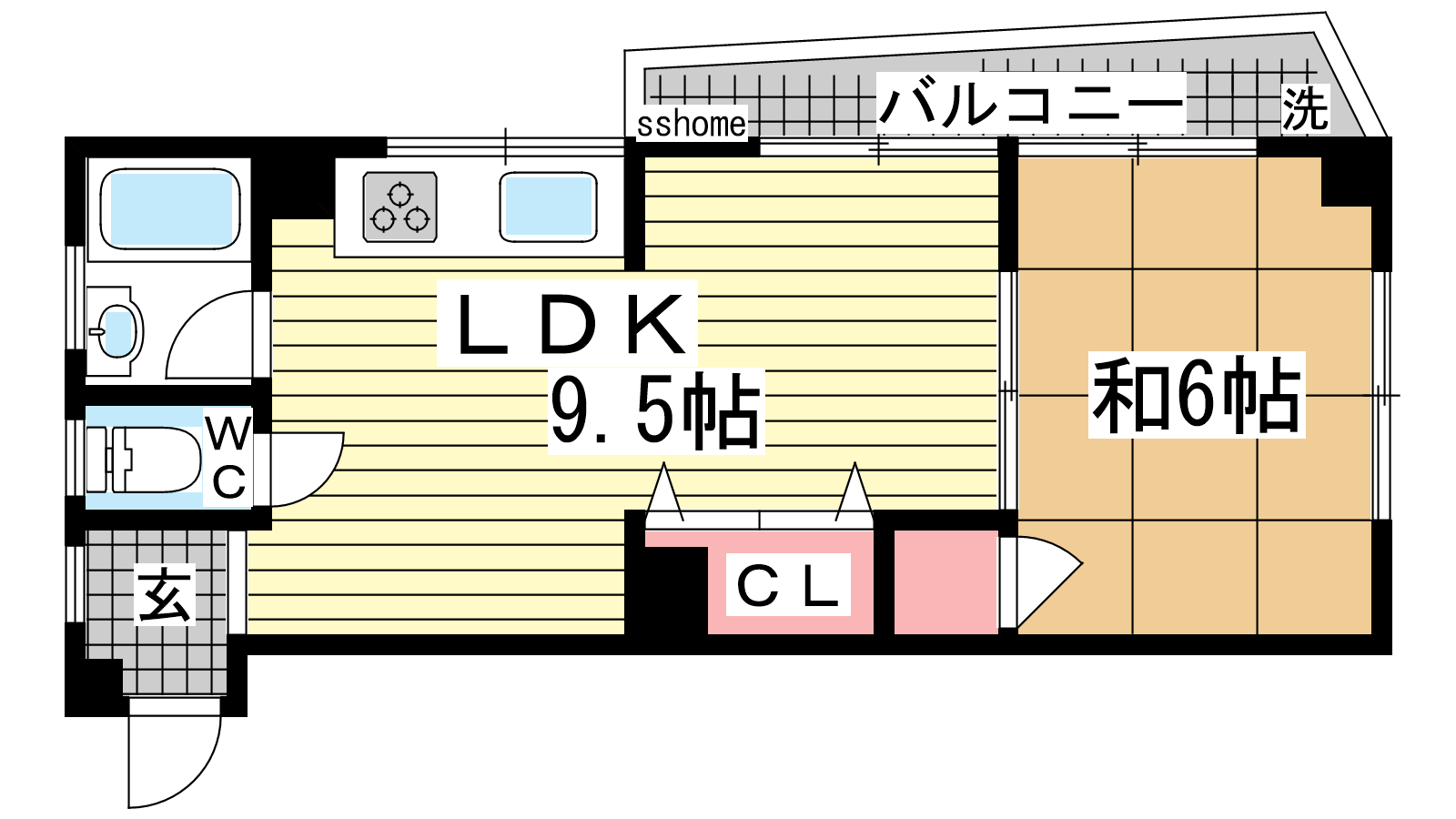 - LDK9.5帖、和室6帖