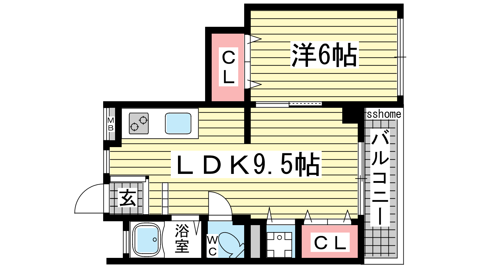 - LDK9.5帖、洋室6帖