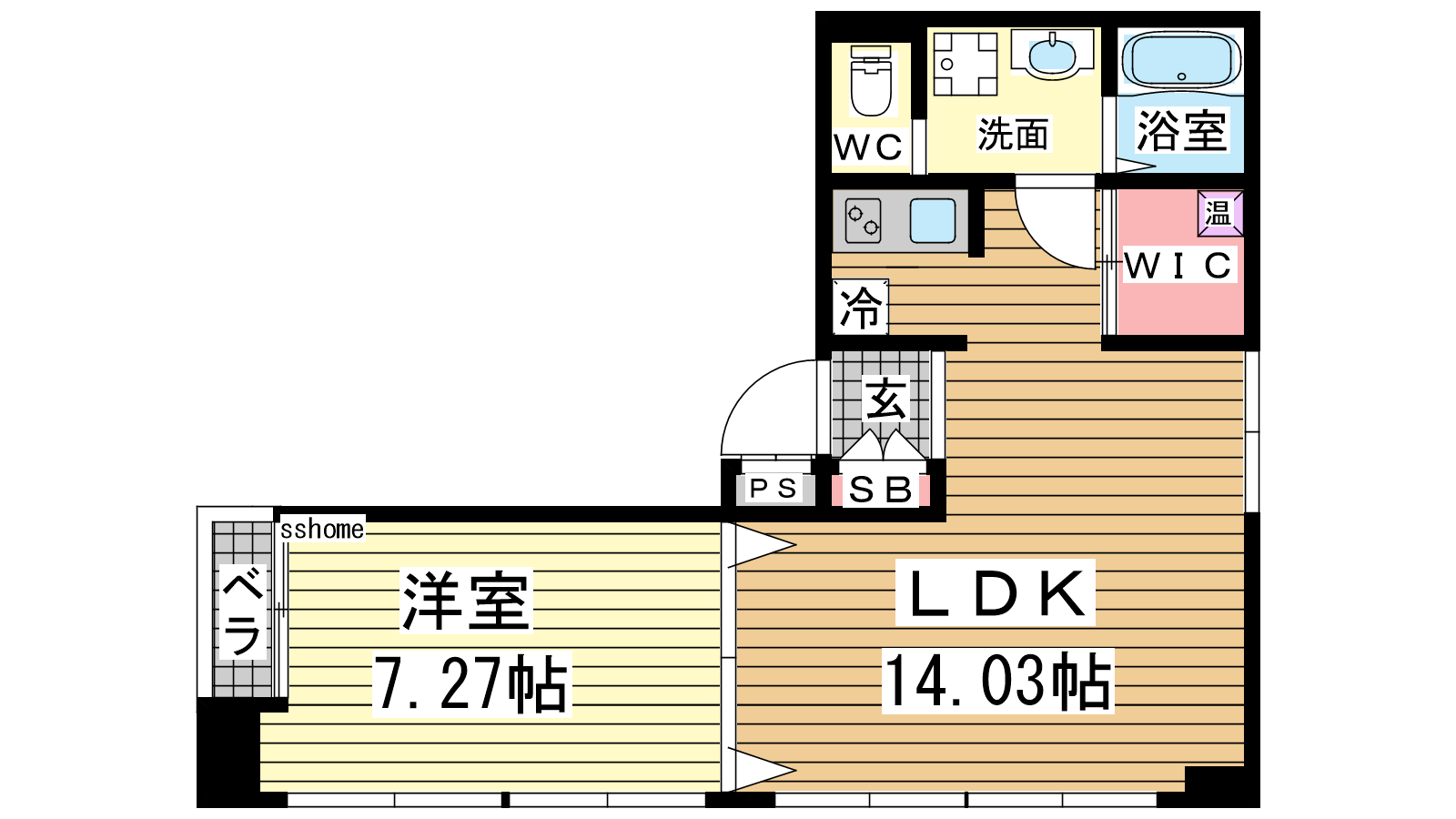 - LDK14.03帖、洋室7.27帖