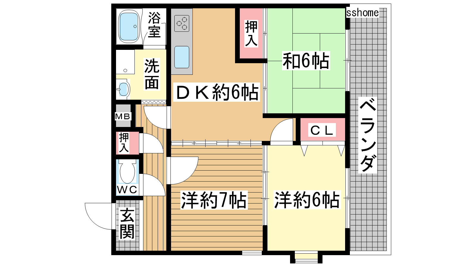 - DK6帖、洋室7帖、洋室6帖、和室6帖
