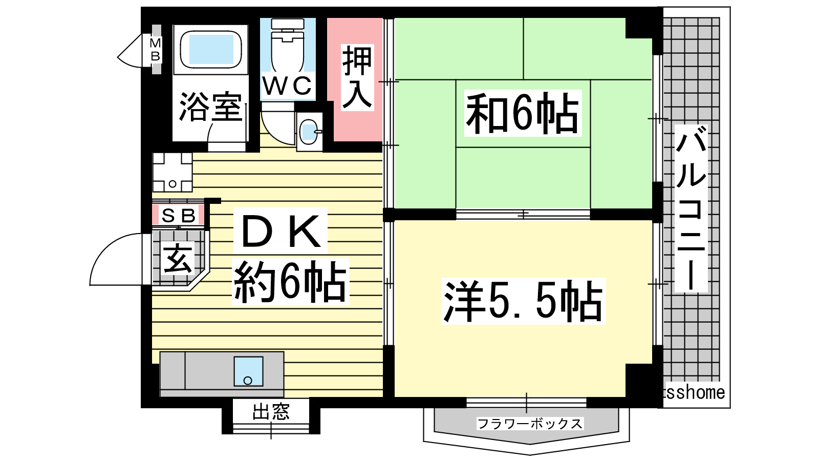 - DK6帖、和室6帖、洋室5.5帖