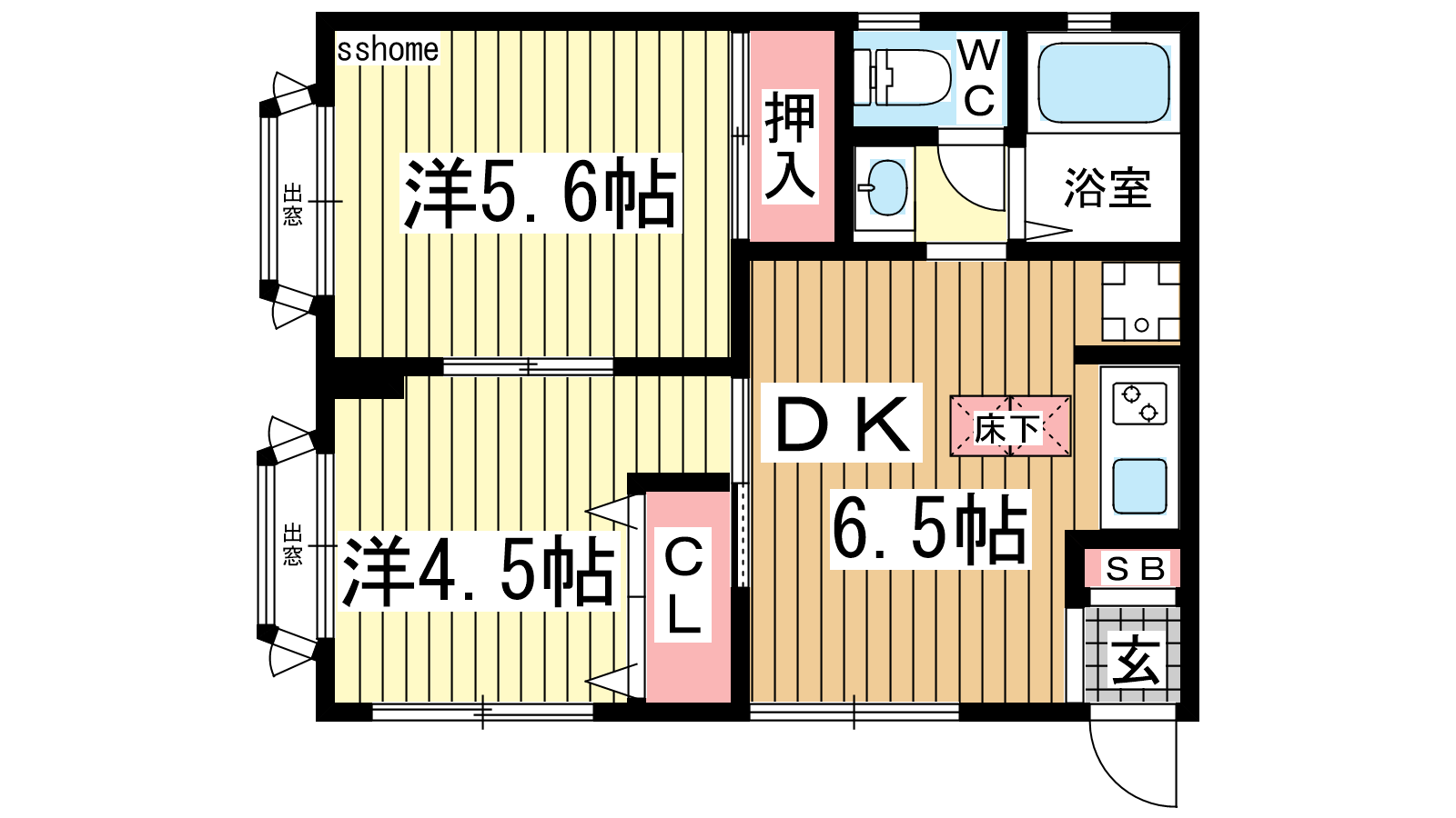 - DK6.5帖、洋室5.6帖、洋室4.5帖
