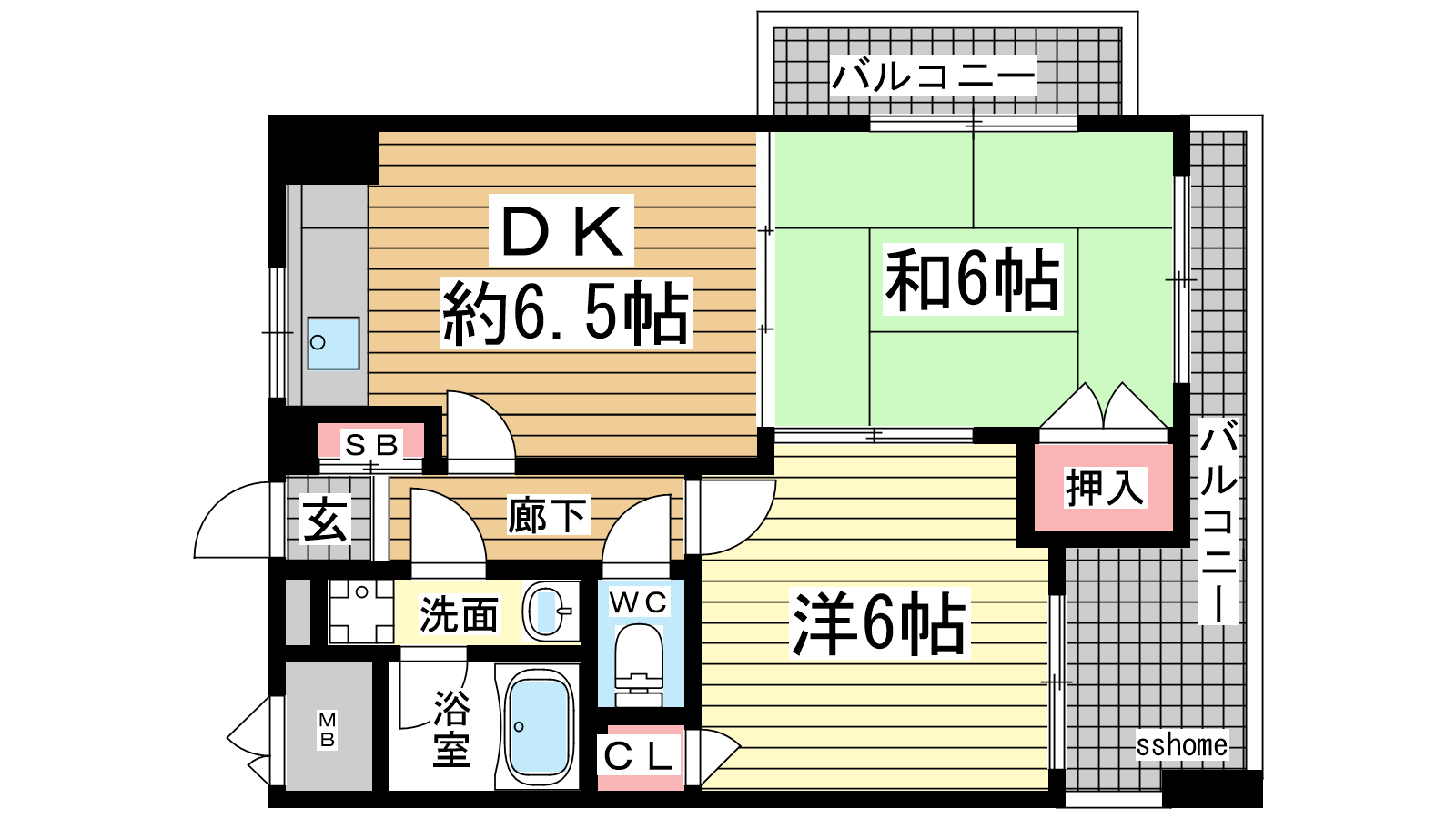 - DK6.5帖、洋室6帖、和室6帖