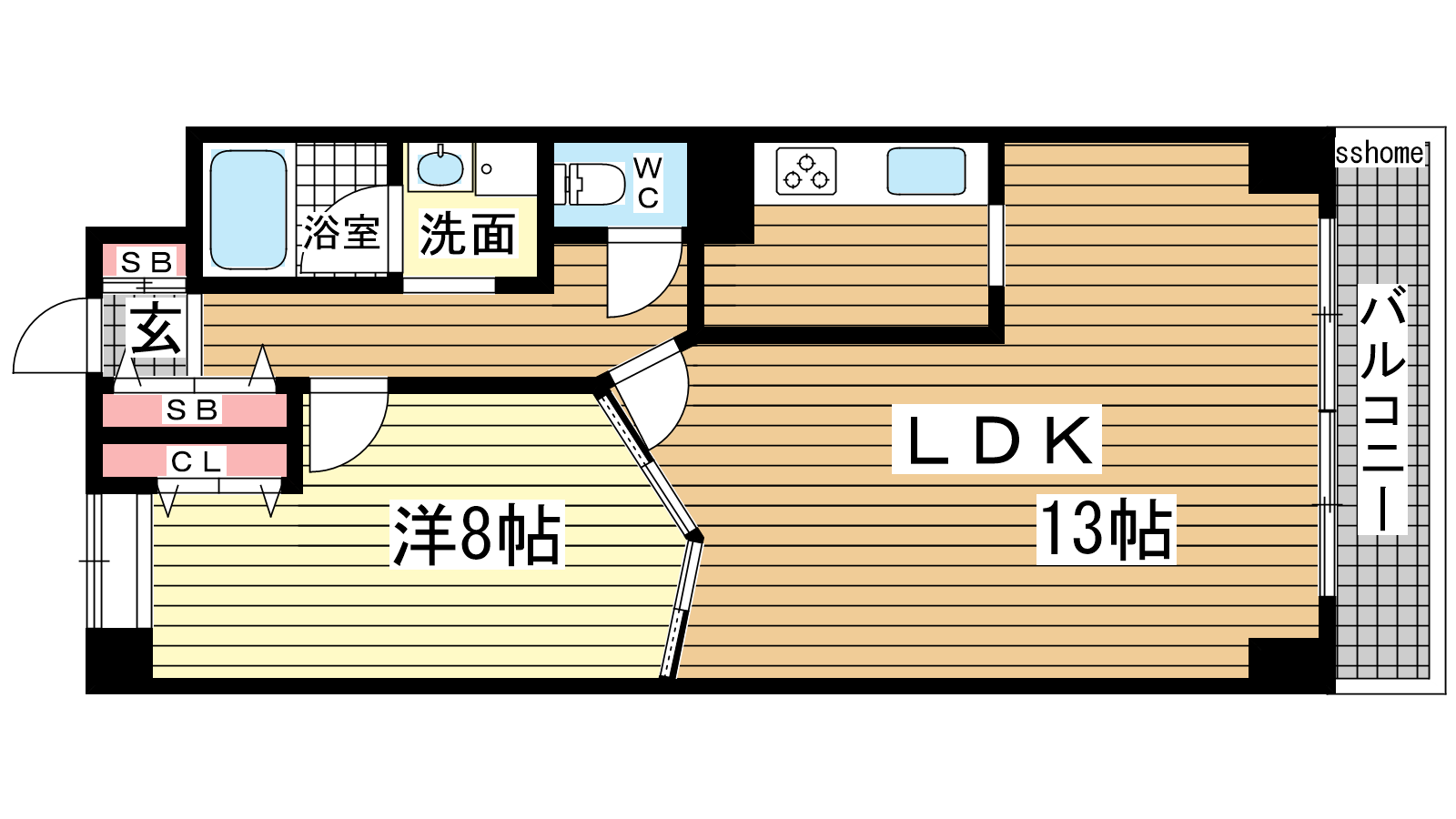 - LDK13帖、洋室8帖